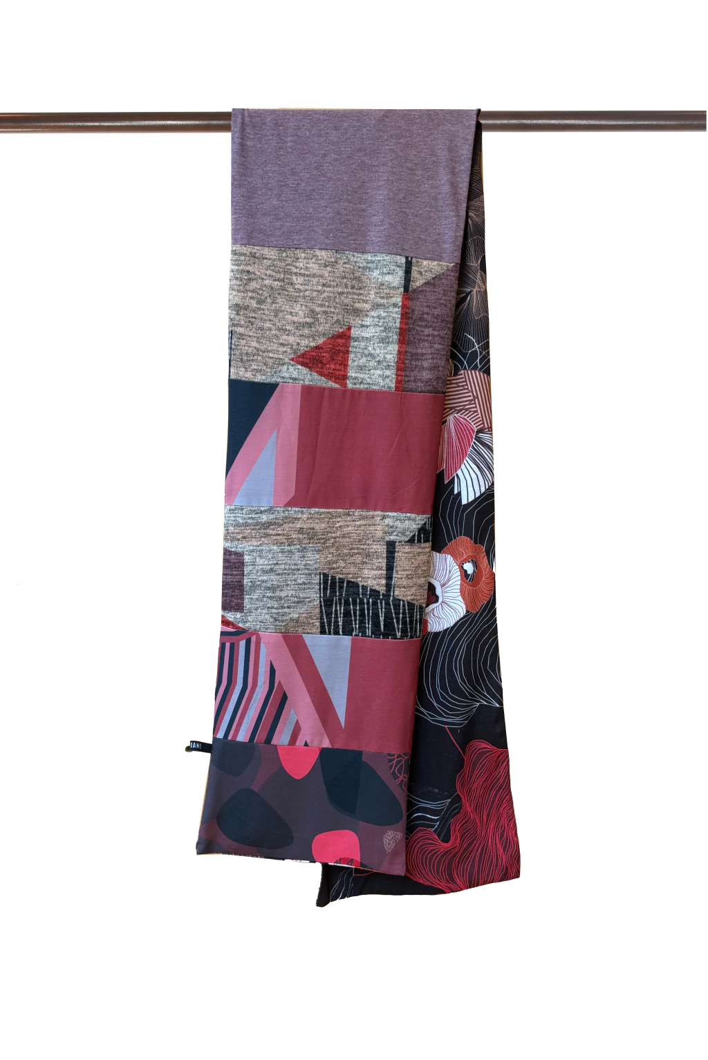 Cada vez que hacemos un corte de prendas con nuestras telas estampadas, nos reservamos aquellos espacios que de otra manera irian a descarte, para hacer un album de difrerentes diseños y texturas que atesoramos. Luego, estamos varios dias eligiendo como contar una historia de color y texturas una a una, combinandolos para lograr prendas seriadas, diferentes una de otra. El resultado, es un accesorio que habla de la reutilizacion textil, doble, con una cara lisa y la otra estampada para usar como quieras.