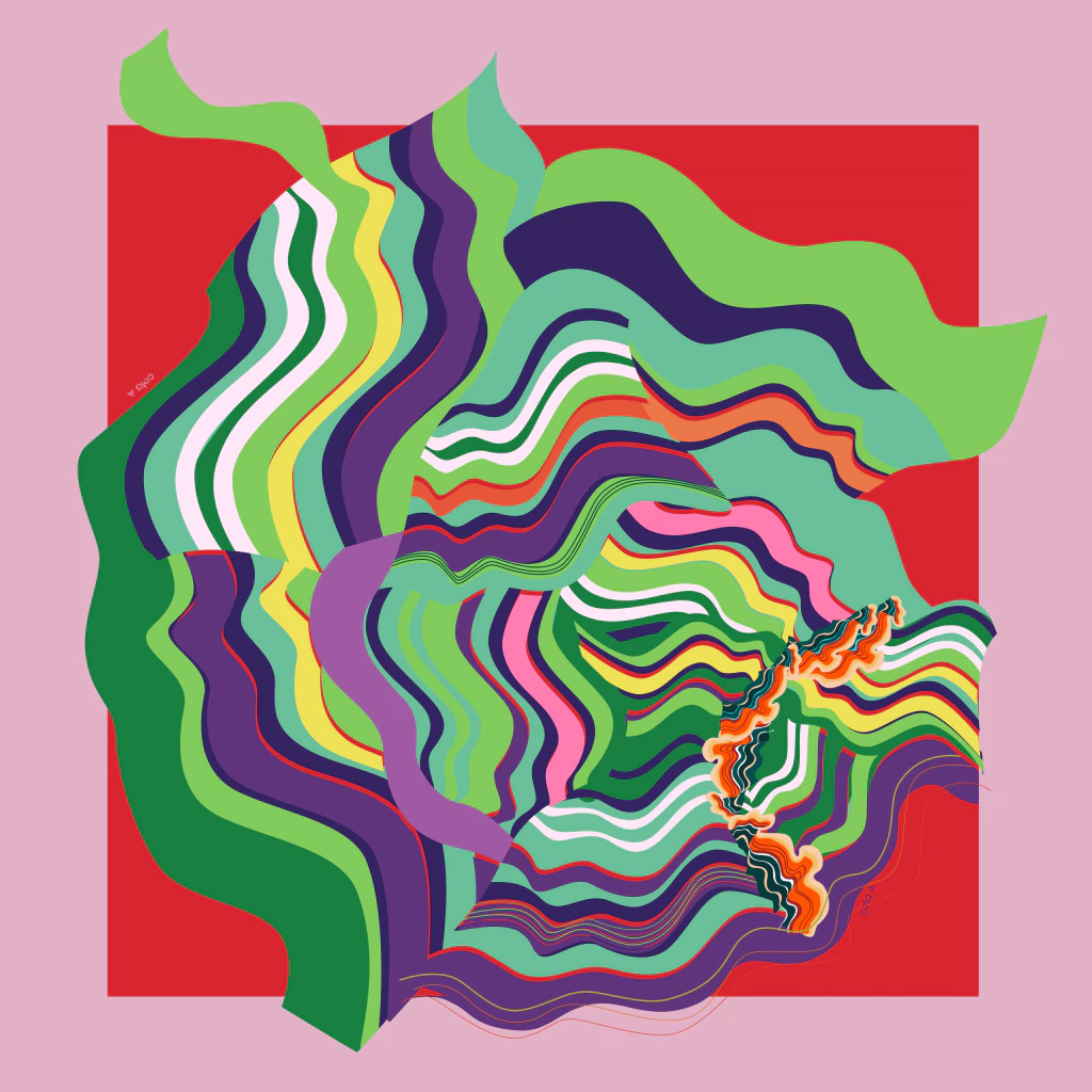 Este print es una composición orgánica inspirada en flores y pétalos envolventes, armando un juego infinito de lineas y colores.